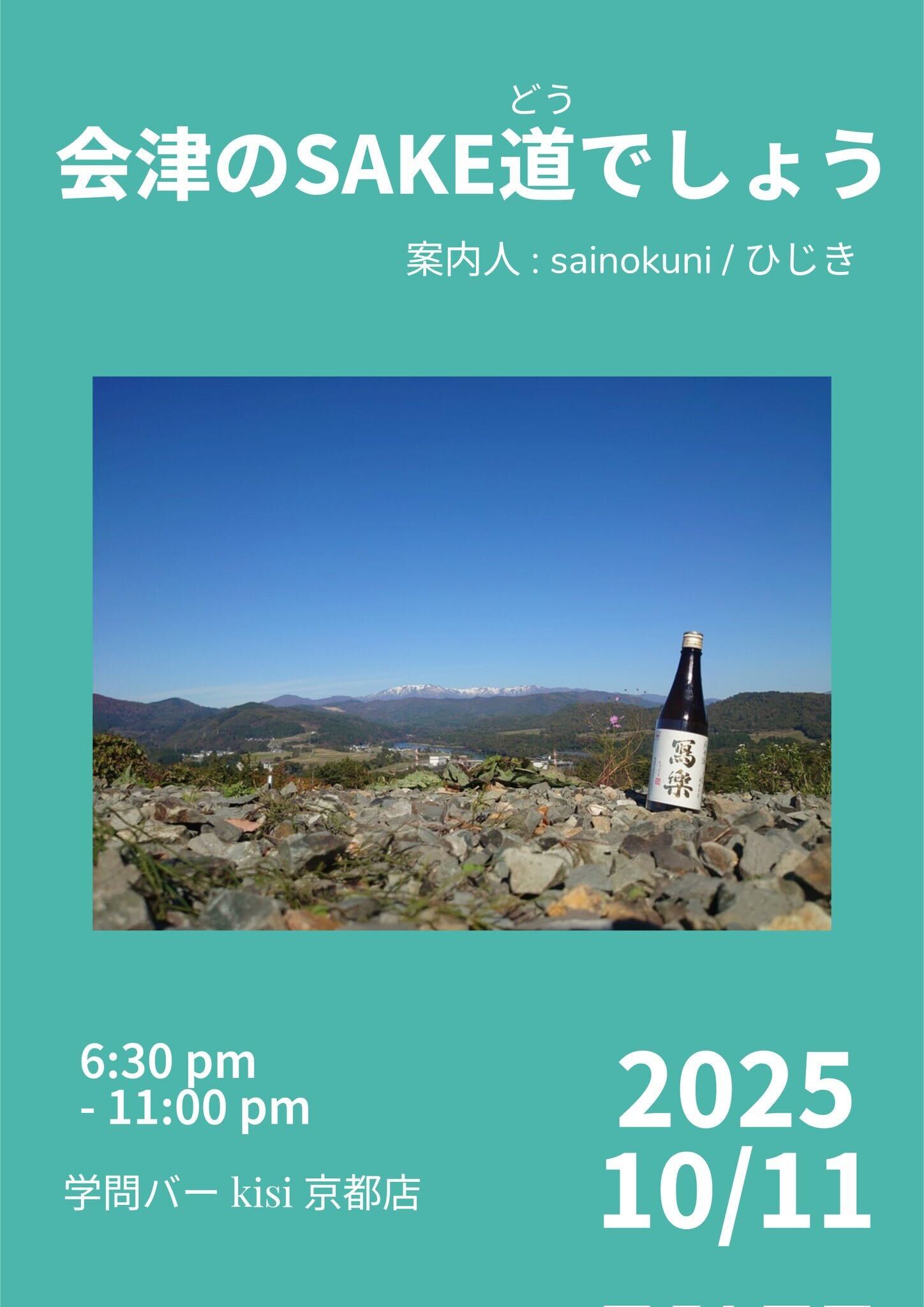 2025.10.11 お名前、所属先、研究テーマ Sainokuni/ひじき 会津の日本酒の水質と食文化について イベントテーマ バーテンダーよりお客様へメッセージ 当日は会津の地酒を持って行きます!角打ちスタイルの学問BAR✨みなさまお待ちしております! SNS 【X】@aitomo6 イベントリストへ